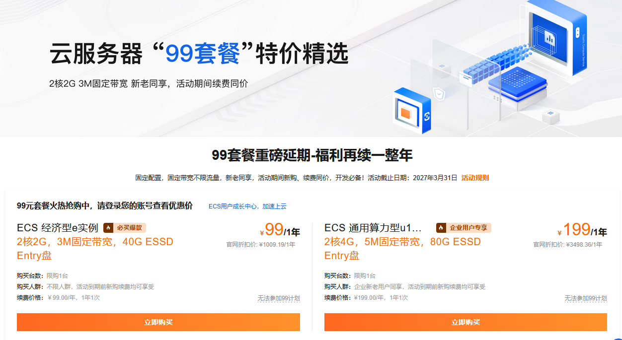 可随时自助获取、弹性伸缩的云服务器三年低至5折,多种配置可选